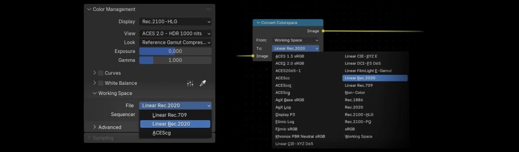Új Working Space opciók – ACEScg és Linear Rec.2020