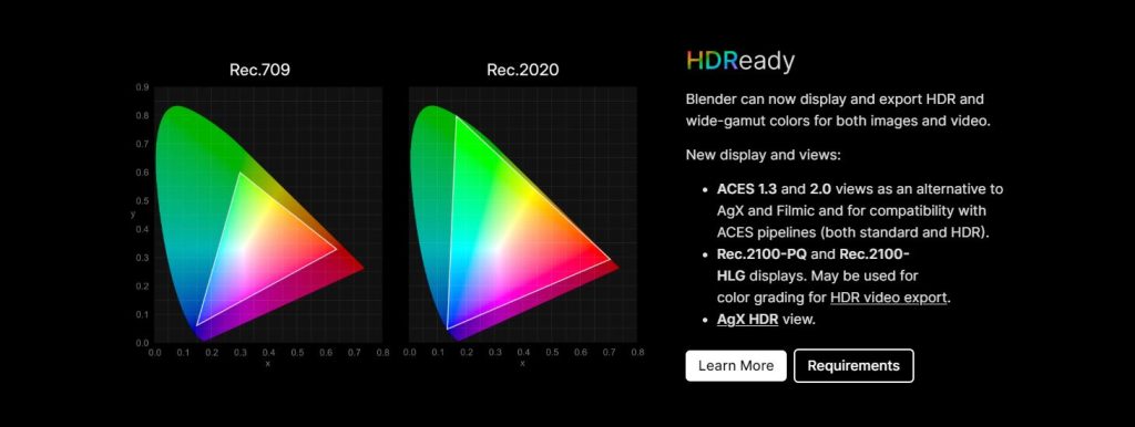 Ezekkel szélesebb színskálát lehet használni az anyagokhoz, fényekhez és kompozitáláshoz, valamint követni a szokásos ACES munkafolyamatokat.