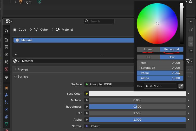 - intuitívabb színválasztás → Linear + Perceptual RGB