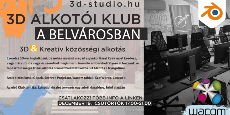 Blender 3D Klub Blender 3D Klub-ot indítunk, aminek a célja hogy kötetlenül tudjunk együtt 3D-ben alkotni. Segíteni egymást elakadások esetén, közös projekteket létrehozni. Kapcsolatépítés és gyakorlás egy közösségi térben, hasonló érdeklődésű és mentalitású emberekkel. Kötetlen 3D jammelés, ahol mindig az …